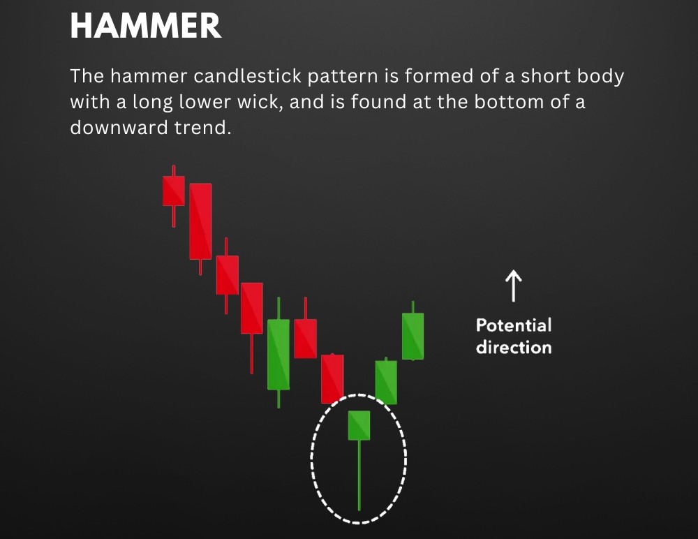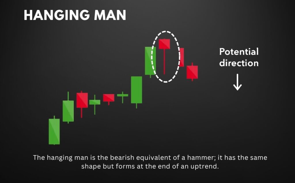 - What it means: A Hammer signals a potential bullish reversal, indicating that sellers pushed the price down, but buyers regained control. A Hanging Man suggests a potential bearish reversal, indicating that buyers are losing control.